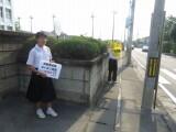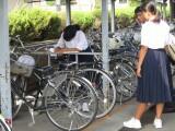 今朝は、生活交流委員会が定例のあいさつ運動と自転車点検を行いました。