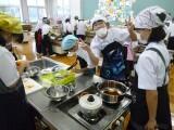 今日は、「ひまわり学級」の交流学習でした。家庭科の調理実習、おにぎりを作りました。