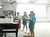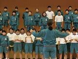 今日は給食終了後、各クラスごとの合唱練習、全校生でテーマソングの練習を行いました。