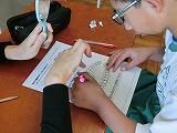 取り出した「えら」に過酸化水素をかけ、血液の色を観察しました。