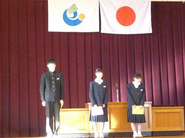 始業式では、各学年の代表者が今学期の抱負を発表しました。