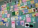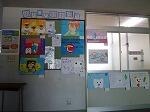 昇降口にポスターの優秀作品と、標語の優秀作品が展示されています。