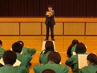 校長先生からお話を頂き、生徒は真剣な眼差しで聞いていました。
