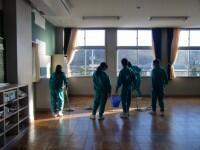 各クラスの美化委員さんが協力してワックスがけを行いました。