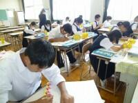 4時間目、テストが終わりホッとしながらも、早速答え合わせ!真剣です。さすがは3年