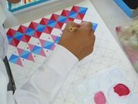 色彩のグラデーションとパターンを独自に考えて丁寧に色を塗っています。とても根気が必要です。