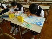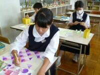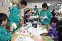 この時代表である派遣団が千羽鶴を、広島市平和記念公園に建てられてある「原爆の子の像」に奉納します。その折り鶴を生徒全員が折り、折り終えた鶴を束ねる作業を2年生が行っています。