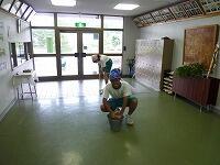 各クラスの美化委員さんが協力してワックスがけを行いました。