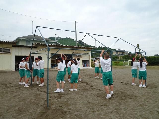 皆中体操→皆中トレーニング→ストレッチ→マット運動の順で授業を進めています。