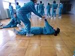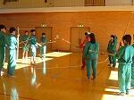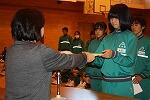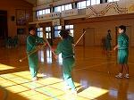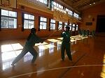次に面、胴、こての打ち方の指導を受けます。それから二段うちを習い、2人で組んで練習と
