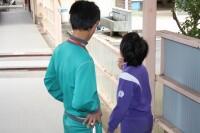 きれいな校舎で新年を迎えるため、冷たい水に手を濡らしながら、ぞうきんがけを頑張っています。また、ロッカーの中もきれいに持ち帰らないとね。早めに持ち帰らないと、最終日は大変になりますよ・・・・・。