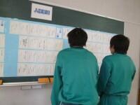 学校の様子を紹介するための準備を、役割分担して行っているようです。