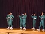 ダンスの審査をするのは、剣道を選択した生徒たちです。最初照れくさそうでしたが、曲がかかると元気に踊り出しました。