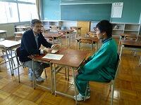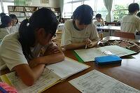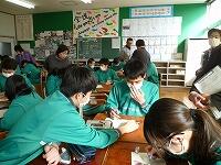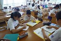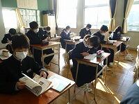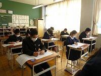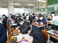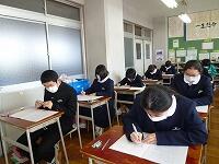 また、リーディングテストは、リテリングに挑戦しました。教科書の内容を膨らませ、「こたつ」について、単語のみを見ながら英語で説明するというテストでした。緊張しながらも、意欲的に取り組んでいる生徒の姿が印象的でした。