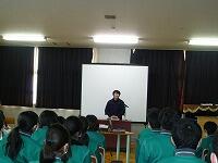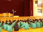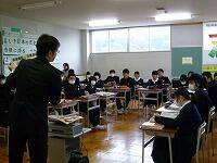 本日5・6校時に、皆川中学校の全生徒と皆川城東小学校の3年生から