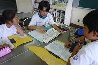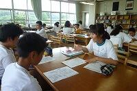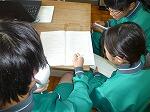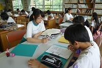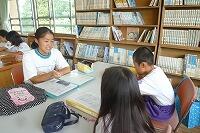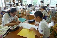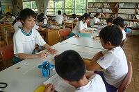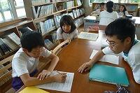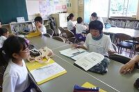 2年生は1・2組合同で図書室。グループ学習には最適ですが、