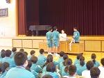 校長先生の講話は脳についてのお話でした。そして指の組み方と腕の組み方の組み合わせによる性格診断が紹介され、生徒は一喜一憂しながら楽しく講話を聞きました。