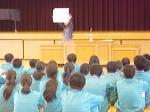 6年生までの児童が一同に集まって、「夢プロジェクト」という活動が行わ