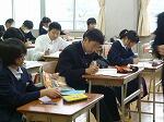 また、リーディングテストは、リテリングに挑戦しました。教科書の内容を膨らませ、「こたつ」について、単語のみを見ながら英語で説明するというテストでした。緊張しながらも、意欲的に取り組んでいる生徒の姿が印象的でした。