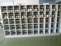 〈元気に登校した1,2年生の下駄箱。靴がそろっています〉
