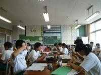 本日、5校時は2年生の、6校時は3年生のそれぞれ総合的な学習の時間でした。梅雨が明けてからは急に猛暑になり、午後の教室たいへんな暑さですが、生徒たちは皆がんばって先週行われた2年生は職場体験学習のまとめを、3年生は修学旅行のまとめをしました。