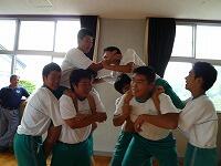 応援団員はずっと以前から、練習を積んできましたが、このように1・2年生と合同で練習するのは今回で2回目です。応援団長のリードで、1・2年生も一生懸命声を出していました。