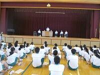 5校時終了後、体育館で生徒集会が開かれました。内容は、2学期に行われる体育祭関係でした。