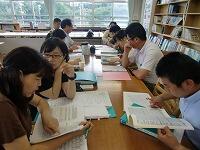 1年生は、7月4日(木)の校外学習のしおりができあがり、しおりの読み合わせを行っていました。