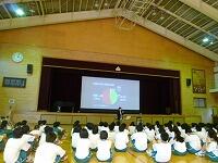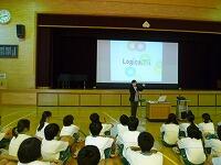 6校時、体育館で「携帯電話講習会」が開催されました。これは最近多発している携帯電話やスマホを巡るトラブルに巻き込まれないように、これらを持つ前の中学生を対象に開かれたものです。