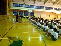 天候の回復に伴い、体育館の中はとても蒸し暑かったですが、皆中生は1時間の講話を一生懸命、聞くことができました。