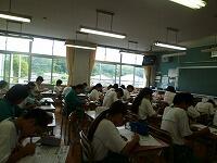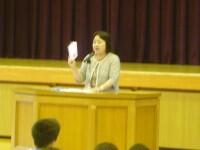 全員原稿用紙に自分の経験や感じたこと、思いや考えを書き記していました。選ばれた生徒が教壇にて発表。2年生は緊張の面持ちで一生懸命発表し、3年生は感情をこめ、しっかり前を向いて発表していました。