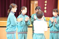 グループに分かれて応援団から手拍子のやり方を教えてもらい、全員であわせました。