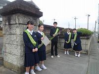 今月は、2学期の反省を受けて、月曜日の一斉下校にあわせて、正門、東門での一時停止、左右確認後の発進について下校指導を行いました。