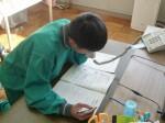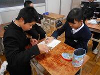 5校時、1年生は美術の授業で印箱を作っていました。彫刻刀で熱心に彫っています。