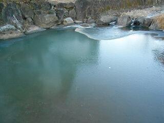 今朝も冷えましたが、校地内の藤川は昨日よりは凍っている部分が減りました。