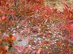 赤くなったドウダンの張ったクモの巣には、朝露が冷たく光っていました。