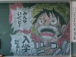 ▲教室には、担任の先生が心を込めて描いた黒板アートとメッセージが。