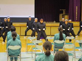式後の見送りは雨天のため、体育館での実施となりました。応援団による演舞披露とエールが送られた後、あたたかい拍手の中、卒業生29名がこの学び舎を巣立ちました。