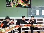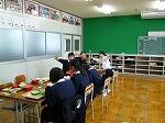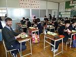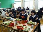 給食の様子をみてみると・・・インフルエンザの蔓延を防ぐために先週から前向き給食を実施しています。生徒達は、おしゃべりをしたいと思いますが、もう少し落ち着いたら前向きからグループでの給食になるかもしれませんね・・・!?