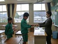 感謝の気持ちをこめて、生徒を代表して生徒会長からお礼の言葉を・・・そして、各学年の代表からも、お手紙を渡しました