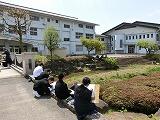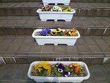 今日は、お昼休みの時間に美化委員会の生徒が集合し、正面玄関前にパンジーのプランターを植えました