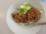1,2時間目は家庭科室から良いにおいがしました。のぞきに行ってみると、すてきな“焼きコロッケ”を作っていました。