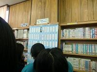 今回は戦後70年の節目に平和の大切さを考えようと、戦争や平和に関する本を紹介してくれました。そのお薦めの本を、たくさんの生徒が借りていきました。図書委員さんの仕事ぶり立派でした。