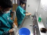 最後に清掃の様子です。水は冷たいですが、一生懸命取り組んでます。