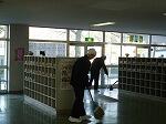 「今日は昇降口の中でやっていいよ。ごくろうさま。」