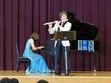 さて、本日の午後、栃木市のアウトリーチ事業(※公共ホールがプロのアーティストを地域の学校や福祉施設に派遣してワークショップ、ミニコンサートなどを行う普及活動。)により、皆川中学校体育館にて、フルート奏者・さかはし矢波様、ピアノ奏者・福田素子様による音楽鑑賞会が開かれました。