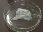 取り出した「えら」に過酸化水素をかけ、血液の色を観察しました。