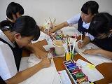5月には生徒総会が行われます。本校では、そこで学級紹介を行います。その準備として学級旗を製作しています。