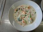 味を調え、最後にゆであがったニョッキとチーズとほうれん草を