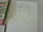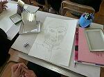 鏡を見ながら、自画像を描く3年生の素晴らしい出来にびっくり!